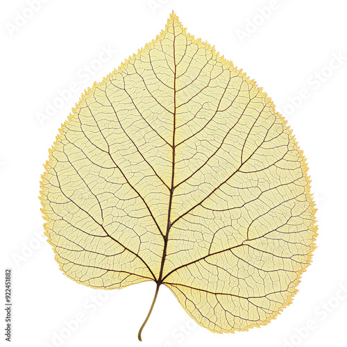 Fototapeta premium A delicate, dried leaf showcasing intricate vein patterns and a soft, pale yellow hue, perfect for nature-inspired designs.
