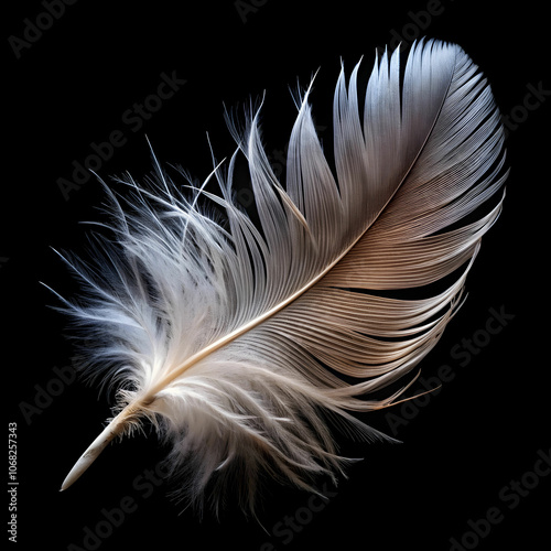 © Asif, Obraz premium A delicate feather resting on a white background,