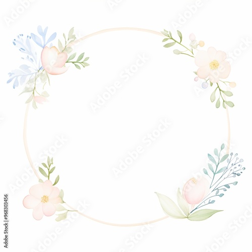 © GenBy, Fototapeta premium A delicate floral frame featuring soft pastel flowers and greenery, perfect for invitations or artistic designs.
