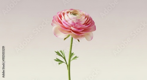 © Erisna Yolanda, Obraz premium A delicate flower with pink and white petals and a green stem against a gradient background