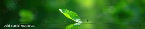© สิริวุฒิ นาคโคตร, Fototapeta premium A delicate green leaf suspended in the air above a pond, nature, green