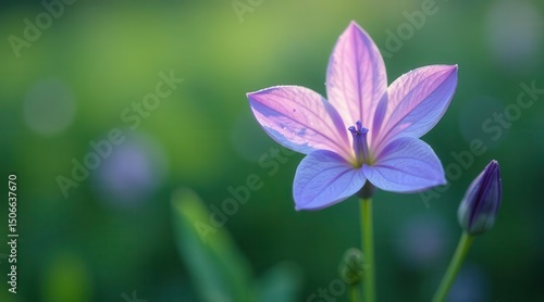 © Mali, Fototapeta premium A Delicate Lavender Wildflower Blossoms in Soft Sunlight, a Bud Awaits its Turn