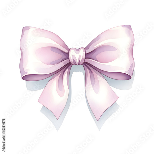 © Iin, Naklejka premium A delicate light pink satin bow tied neatly, isolated on a soft shadow with white background