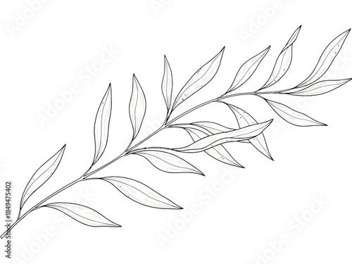 Naklejka premium A delicate line drawing of a leafy branch with multiple leaves extending from a central stem
