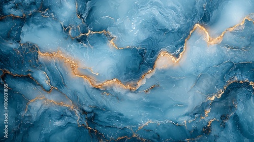 Fototapeta premium A delicate pastel blue marble background with thin gold veins, creating a serene and refined aesthetic