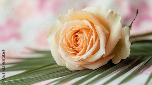 Obraz premium A delicate peach rose resting gracefully radiating love and tender beauty captured in soft diffused