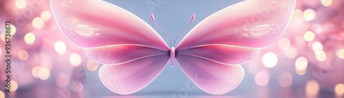 Fototapeta premium A delicate pink butterfly with soft translucent wings against a dreamy background of sparkles and light.