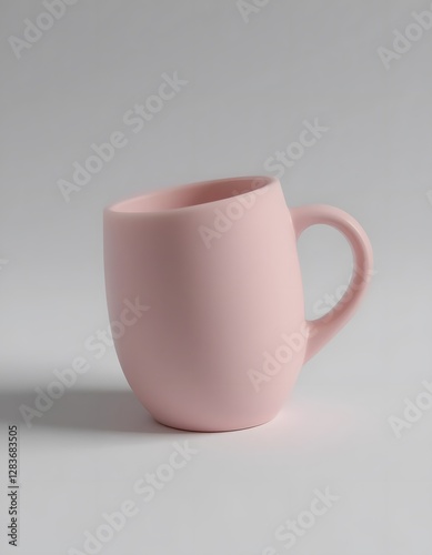© MAR Studio, Obraz premium A Delicate Pink Ceramic Mug on a White Background: Simple Elegance in Minimalist Photography