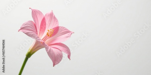 Fototapeta premium A Delicate Pink Flower with Graceful Petals Against a Soft White Background