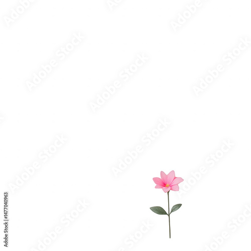 © Natnicha, Naklejka premium A delicate pink flower with green leaves against a white isolated background, perfect for representing beauty and nature in designs and projects.