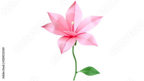 © pippadigs, Fototapeta premium A delicate pink flower with multiple petals and a slender green stem.