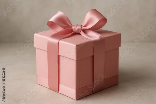 Obraz premium A delicate pink gift box adorned with a satin ribbon, symbolizing celebration...