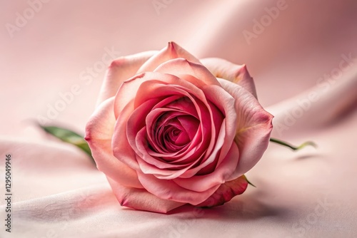 © Indigo Studio, Fototapeta premium A Delicate Pink Rose Resting on Soft Fabric, a Symbol of Elegance and Beauty