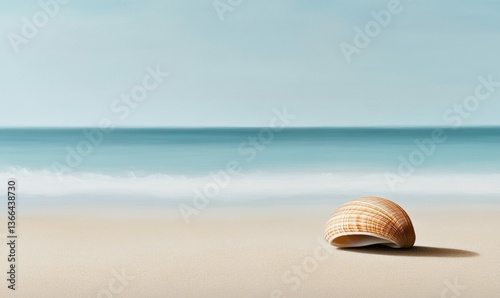 Obraz premium A delicate seashell sits peacefully on a sandy beach with the tranquil ocean...
