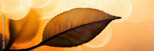 Fototapeta premium A delicate silhouette of a tea leaf is shown against a warm, glowing...
