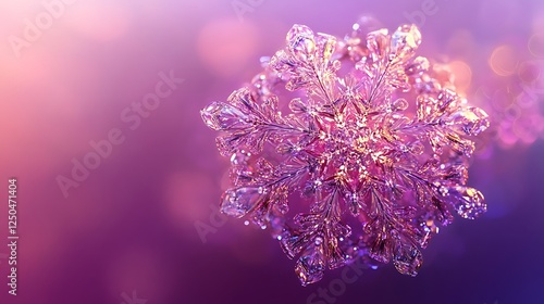 © Ali, Naklejka premium A delicate snowflake with sparkling edges on a twilight purple background