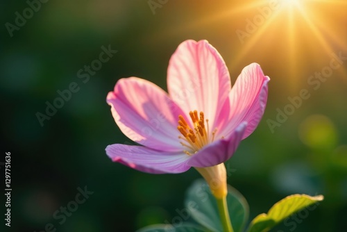 © Uravan, Fototapeta premium A delicate soapwort bloom opens its petals to greet the sun, blooming, flower, morning
