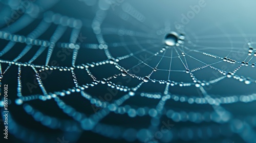Obraz premium A delicate spiderweb glistens with dew, showcasing natures intricate design...