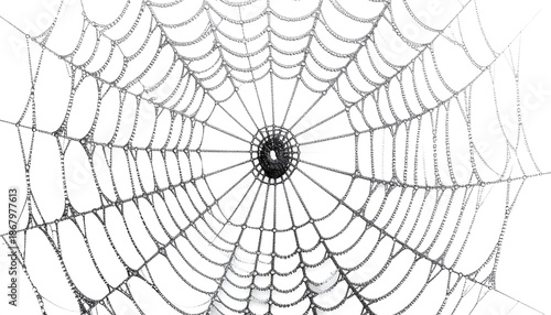 © Semestaa, Obraz premium A delicate spiderweb, grey on white, close-up with a central hub