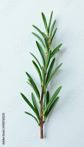 Fototapeta premium A delicate sprig of rosemary on a snowy white background, charm, rustic