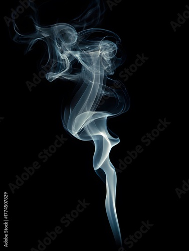 © Apinya, Fototapeta premium a delicate trail of white smoke swirling gracefully against a black background