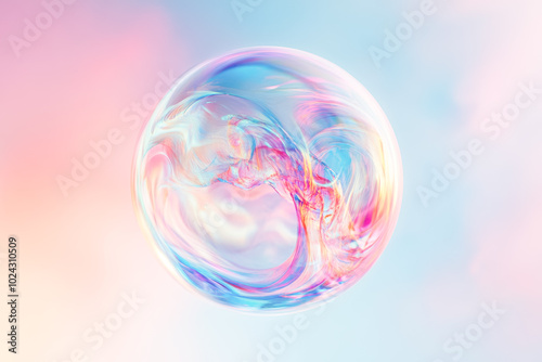 Obraz premium A delicate, translucent bubble with iridescent swirls of pink, blue, and...