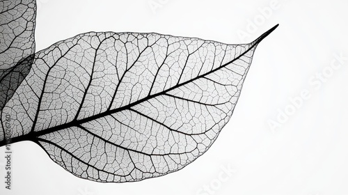 © gentho, Obraz premium A delicate, translucent leaf showcasing intricate vein patterns against a light background.