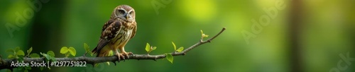 © Uravan, Fototapeta premium A delicate vine wraps around the owl's talons as it sits on a slender branch, owls, wildlife