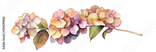Obraz premium A delicate watercolor painting of a hydrangea branch with soft pink, yellow,...