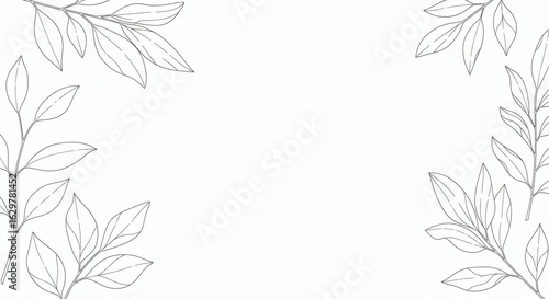 © JuliusGideon, Obraz premium A delicate whisk of hand-drawn botanical leaves creating an elegant corner frame on a white background.
