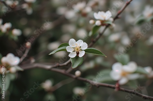 © AbstractAI, Obraz premium A delicate white blossom appears on a tree during the winter season in a botanical setting