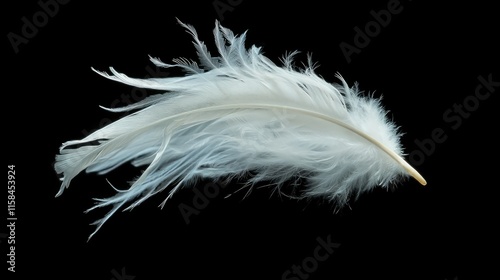 © Natchooda, Obraz premium A delicate white feather floating gracefully with subtle motion blur, captured on a transparent background for an ethereal and peaceful effect