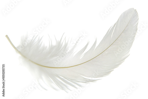 Obraz premium A delicate white feather gently resting against a clean white background,...