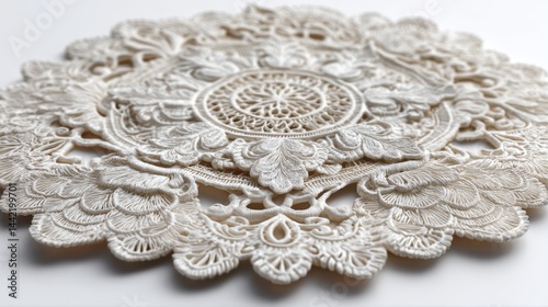 Obraz premium a delicate white lace doily on a white isolated background, intricate and soft texture