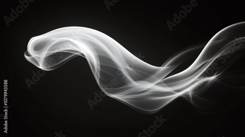 © Ceyhun, Fototapeta premium A delicate white smoke swirl capturing light, isolated on a black background,