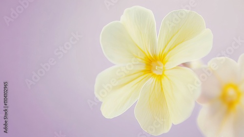 Fototapeta premium A delicate yellow primrose against a soft lavender background, close-up shot,...