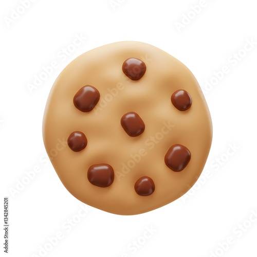 Fototapeta premium A Delicious 3D Rendered Chocolate Chip Cookie Isolated on White Background Sweet Treat Bakery Goodies