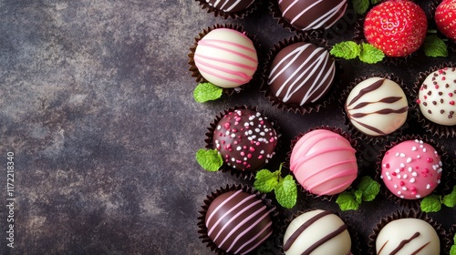 Obraz premium A delightful array of heart-shaped chocolates elegantly arranged on a table,...