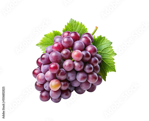 Fototapeta premium A Delightful Bunch of Red Globe Grapes with Vibrant Green Leaves