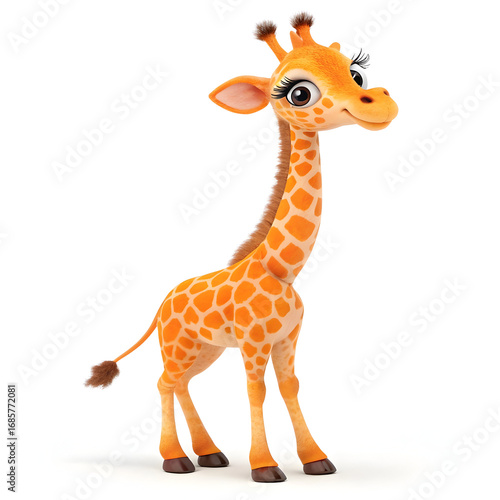 © Mahamuda, Fototapeta premium A delightful 3d cartoon giraffe stands gracefully, isolated on white background its charming features and gentle expression evoke a sense of warmth and innocence