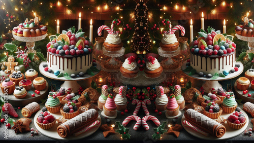 Naklejka premium A delightful selection of Christmas cake, bread and pastries, showcasing...