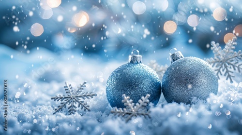 Fototapeta premium A delightful winter scene adorned with delicate snowflakes and sparkling balls