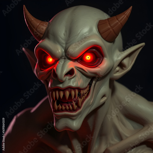 Naklejka premium A demonic figure with glowing red eyes and sharp teeth