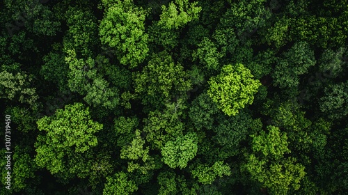 Fototapeta premium A dense aerial view of lush green tree canopies