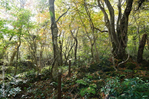 © SooHyun, Fototapeta premium a dense autumn forest with vines and old trees