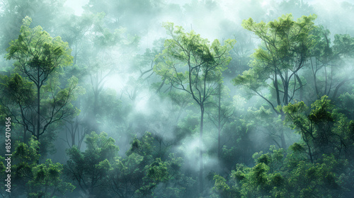 © shiroi, Obraz premium A dense forest shrouded in mist landscape