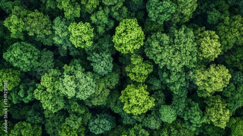 © Intach, Naklejka premium A dense green forest viewed from above, emphasizing natures power in CO2 absorption and carbon neutrality. A perfect scene for eco-conscious visuals