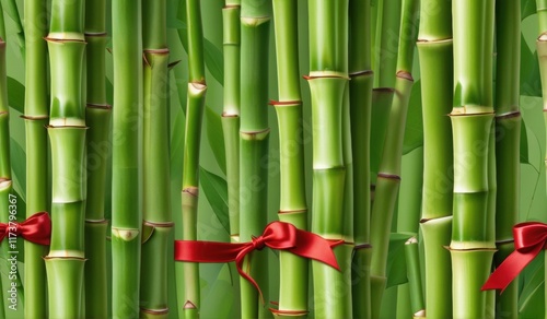 Fototapeta premium A dense grove of tall, slender bamboo stalks bathed in warm sunlight,...