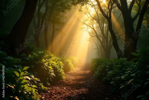 © ᴹᴿ°Shamir, Obraz premium A dense jungle path covered in golden morning light.