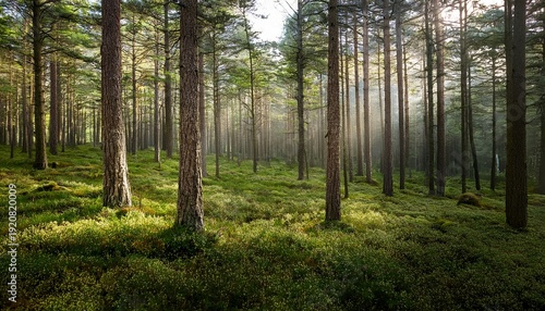 Fototapeta premium a dense pine forest background perfect for a serene natural theme
